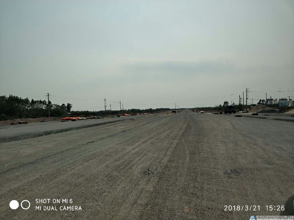 該項(xiàng)目于2017年2月22日進(jìn)場(chǎng)施工,道路約1060m,路寬60m。主要建設(shè)內(nèi)容:道路工程、交通工程、排水工程、照明工程和綠化工程等。合同價(jià)59958018.42元,工期200日歷天,行車道及非機(jī)動(dòng)車車道級(jí)配碎石鋪設(shè)約90%,k2+200及k1+900處過路管全包施工。雨、污水管網(wǎng)基本建成,行車道及非機(jī)動(dòng)車車道級(jí)配碎石鋪設(shè)約90%。施工單位中余建設(shè)集團(tuán)有限公司,監(jiān)理單位廣西益建工程建設(shè)監(jiān)理有限責(zé)任公司。