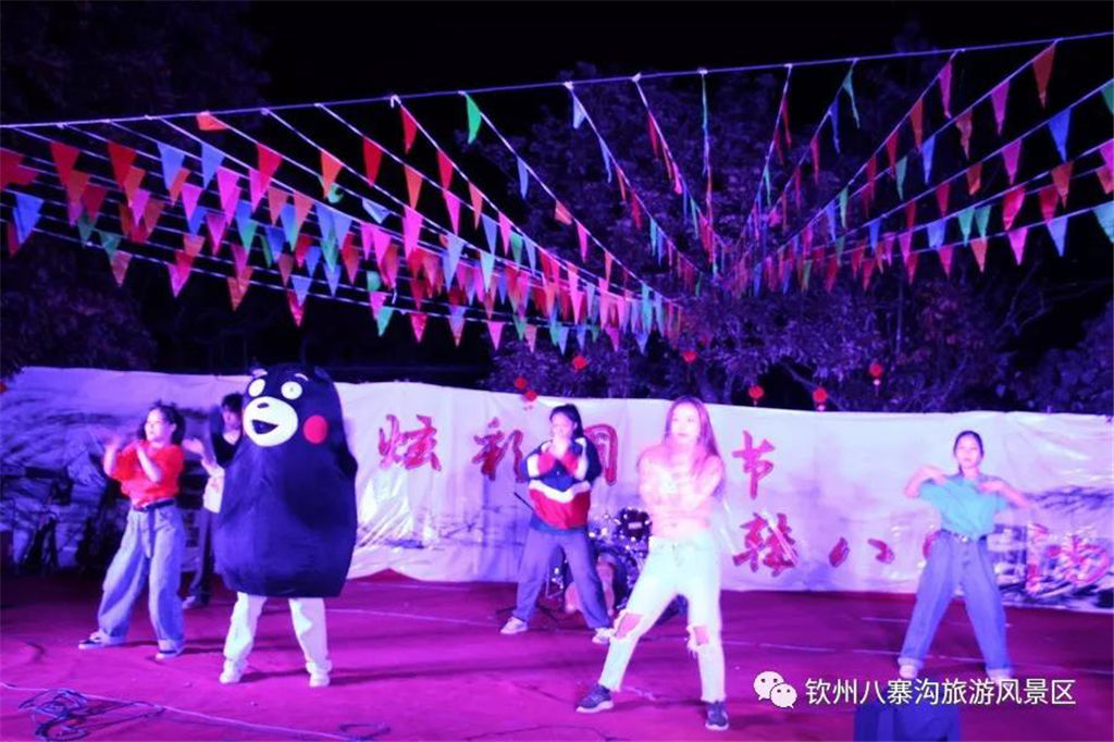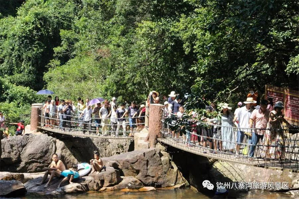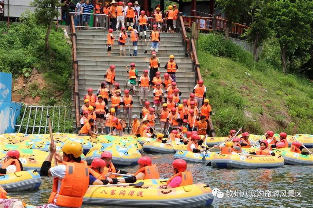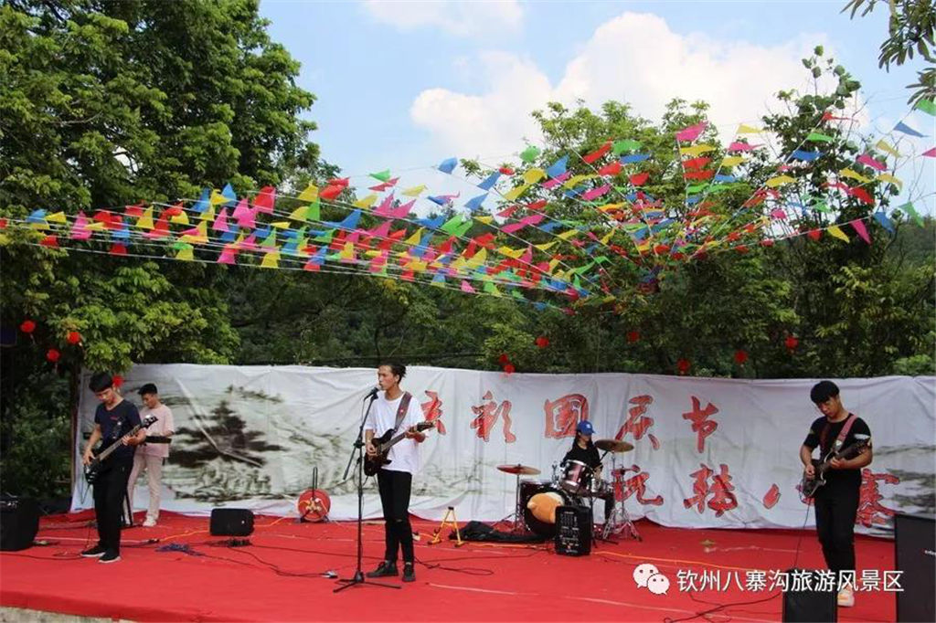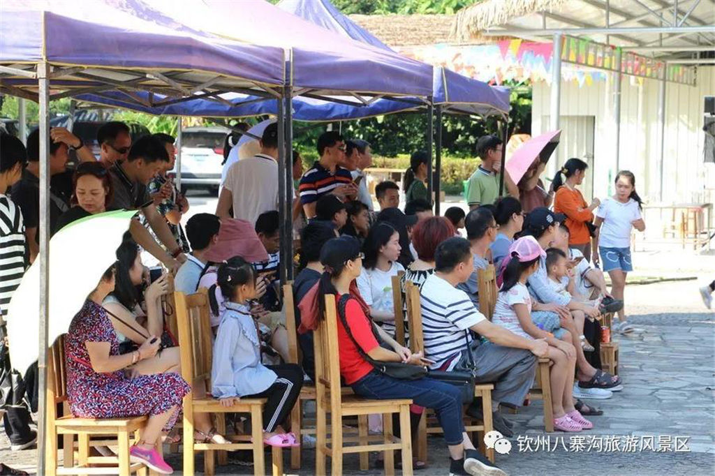 國慶期間景區(qū)舉辦以“炫彩國慶節(jié),玩轉(zhuǎn)八寨溝”為主題的系列活動受到眾多游客親睞。游客們白天可以觀看精彩歌舞文藝演出,玩真人CS運(yùn)動,品嘗各種各樣的特產(chǎn)美食,學(xué)制作欽州坭興陶,體驗欽州第一漂—八寨溝森林漂流,登山徒步暢游山水,呼吸新鮮空氣,天然水潭戲水其樂無窮,整個景區(qū)一片游客如織、喜樂融融的景象。