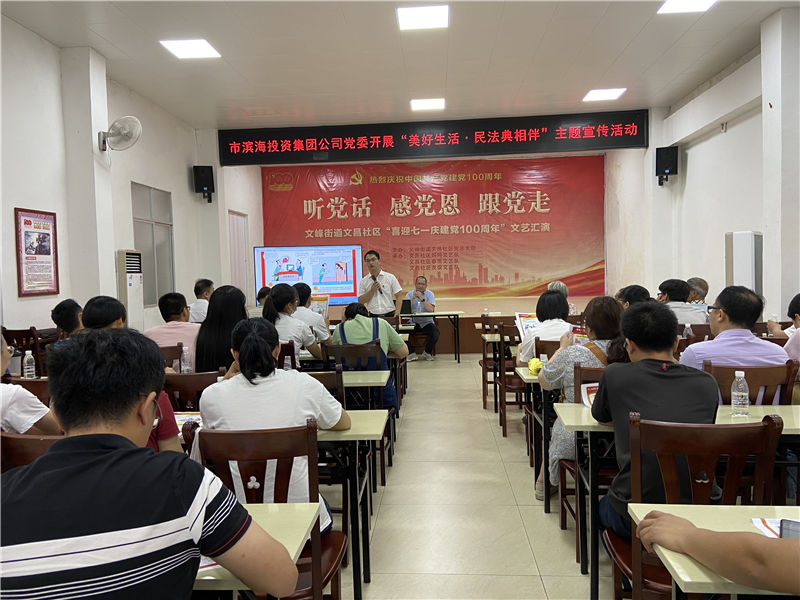 2021年6月28日,集團(tuán)公司黨委組織黨員干部到文昌社區(qū)開展“美好生活·民法典相伴”主題宣傳活動(dòng)。并在文昌社區(qū)新時(shí)代文明實(shí)踐大課堂舉辦了一場(chǎng)《中華人民共和國(guó)民法典》宣傳宣講。
