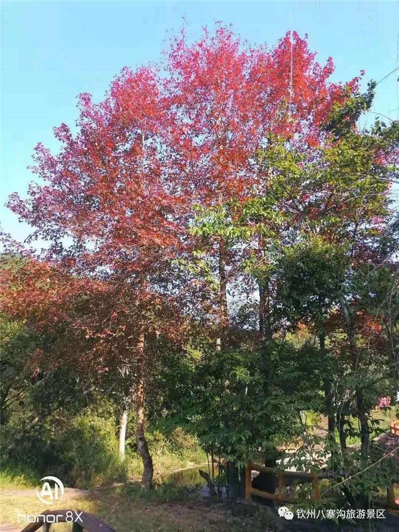 很多人都說,八寨溝好像是沒有冬天的。在北方雪花紛飛之時,八寨溝仍然綠意盎然,仍然溫暖如春。但似乎是預知了冷空氣的到來,八寨溝的楓樹也悄然披上紅裝,梅園盡頭,萬壽谷公路兩側,俯首間,一樹紅葉,滿徑絳色;仰望中,層林盡染,天然畫卷。梅園盡頭,五孔橋旁,流水潺潺,一潭清水,楓葉輕浮,好一幅天然的臨水丹楓圖。