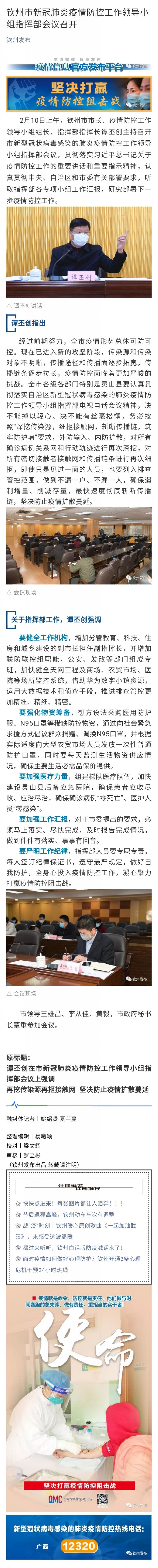 欽州市新冠肺炎疫情防控工作領(lǐng)導(dǎo)小組指揮部會議召開
