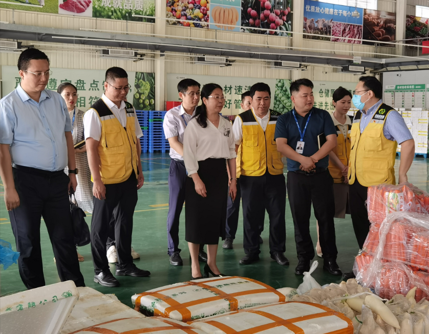 調(diào)研組成員一行先后前往濱海供應(yīng)鏈公司公共配送中心開展實地考察調(diào)研,期間,吳廣明向調(diào)研組詳細介紹了公司業(yè)務(wù)開展的基本情況以及公共配送中心在食材集采、收發(fā)、檢測、溯源、倉儲物流的全過程。