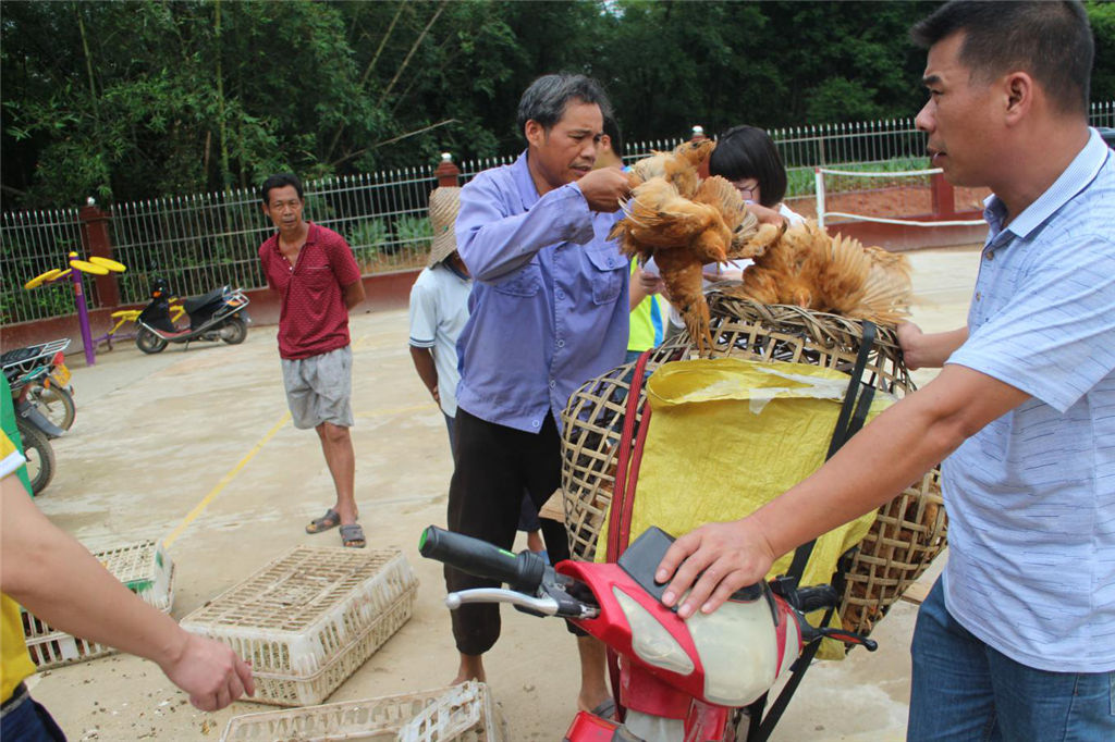 當天上午,運送雞苗的貨車從欽州市出發(fā),經過1個小時的行程來到了靈山縣伯勞鎮(zhèn)新禾村公共服務中心,此時,貧困戶們已經滿心歡喜地到來,攜帶裝雞苗的籠子耐心等候著?,F(xiàn)場,集團公司副總經理楊新棟在工作人員的協(xié)助下,依次給貧困戶們發(fā)放了雞苗,楊新棟笑著對貧困戶說到:“大家領取到的雞苗平均每只重600克左右,雞苗在運出養(yǎng)殖場之前都已閹割過了,具有生長發(fā)育快、抗病能力強、成活率高、市場效益好等特點,大家回去后要管護好雞苗,讓扶貧雞真正為大家?guī)砻撠毾M?rdquo;,看著一只只活潑亂跳、帶著脫貧希望的雞苗裝進了自家的籠子里,貧困戶們笑得合不攏嘴,心里樂開了花。