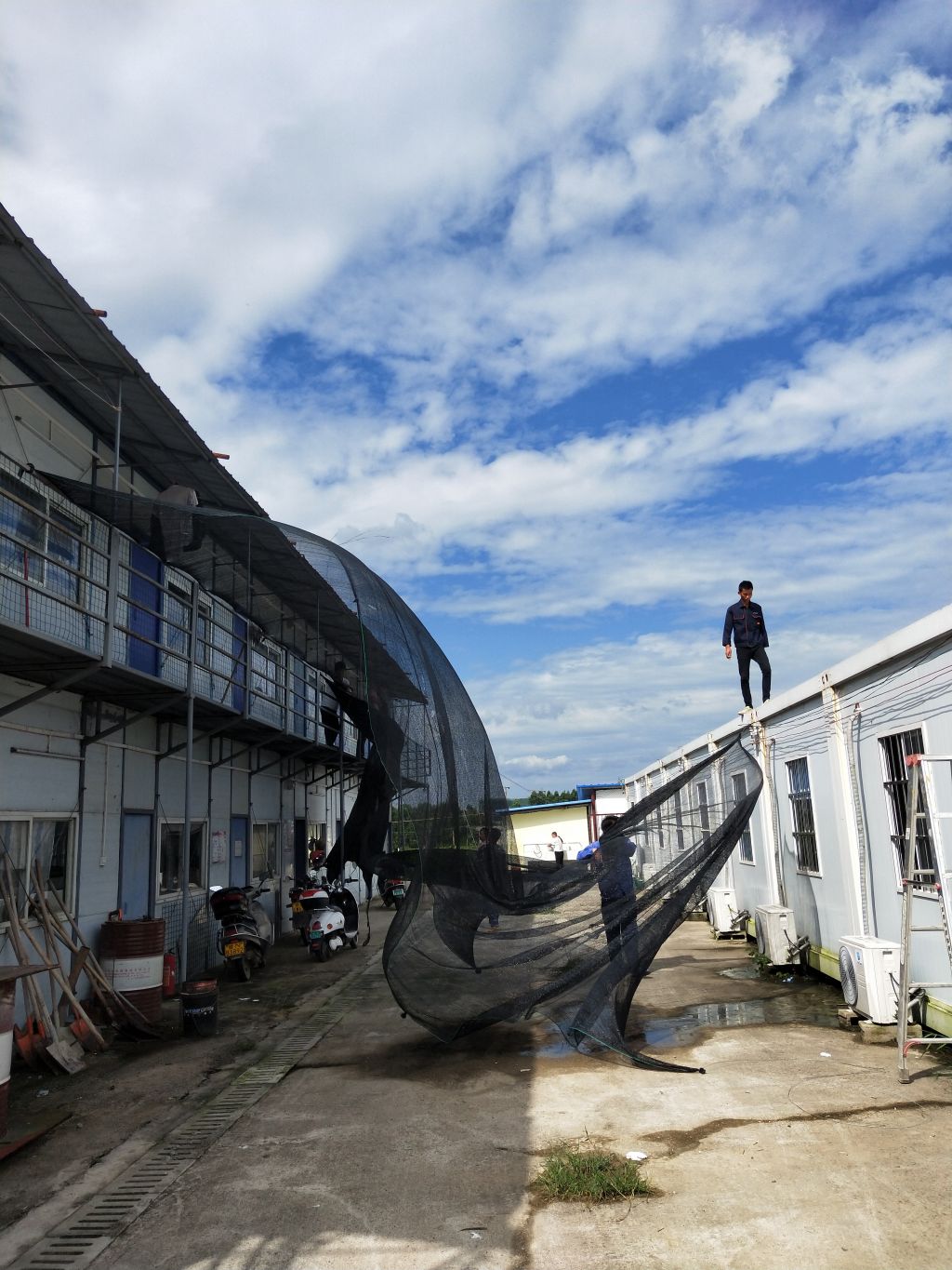 會(huì)議反復(fù)向工人強(qiáng)調(diào)了安全的重要性并提出了以下幾點(diǎn)要求,一是要求工人密切關(guān)注臺(tái)風(fēng)動(dòng)向,雷雨大風(fēng)天氣可轉(zhuǎn)移至一樓會(huì)議室休息;二是要求保障用電安全,做好各配電箱的防雨措施和架空線路的防風(fēng)措施,在臺(tái)風(fēng)暴雨天氣應(yīng)停止供電,尤其要關(guān)閉監(jiān)控?cái)z像頭及地磅傳感器,避免雷擊損壞;三是要求對(duì)空調(diào)外掛機(jī)、瀝青攪拌設(shè)備、圍墻、行道樹(shù)等易倒伏物進(jìn)行加固或拆除,減少財(cái)產(chǎn)損失;四是要求加強(qiáng)生產(chǎn)生活設(shè)施和排水設(shè)施檢查,對(duì)工人宿舍、辦公室等臨時(shí)設(shè)施進(jìn)行全面安全檢查,發(fā)現(xiàn)安全隱患,立即整改;五是要求臺(tái)風(fēng)暴雨過(guò)后要對(duì)所有用電設(shè)施和線路,生產(chǎn)和生活場(chǎng)地與設(shè)施的安全情況進(jìn)行全面排查,消除臺(tái)風(fēng)暴雨帶來(lái)的安全隱患。