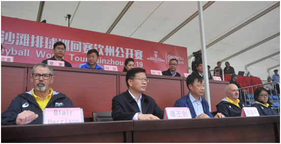 10月31日,2019年世界沙灘排球賽—欽州公開賽開幕式在比賽現(xiàn)場(chǎng)主賽場(chǎng)舉行,國(guó)際排聯(lián)技術(shù)代表布萊爾•哈里森、國(guó)家體育總局排球運(yùn)動(dòng)管理中心黨委書記顧國(guó)平講話,譚丕創(chuàng)市長(zhǎng)致辭并宣布2019年世界沙灘排球巡回賽開幕。