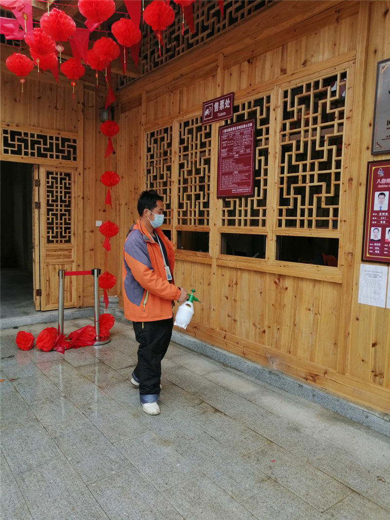 四、值班人員每天對八寨溝景區(qū)售票處,值班室,收費亭等場所進行消毒清潔,并做好消毒記錄;