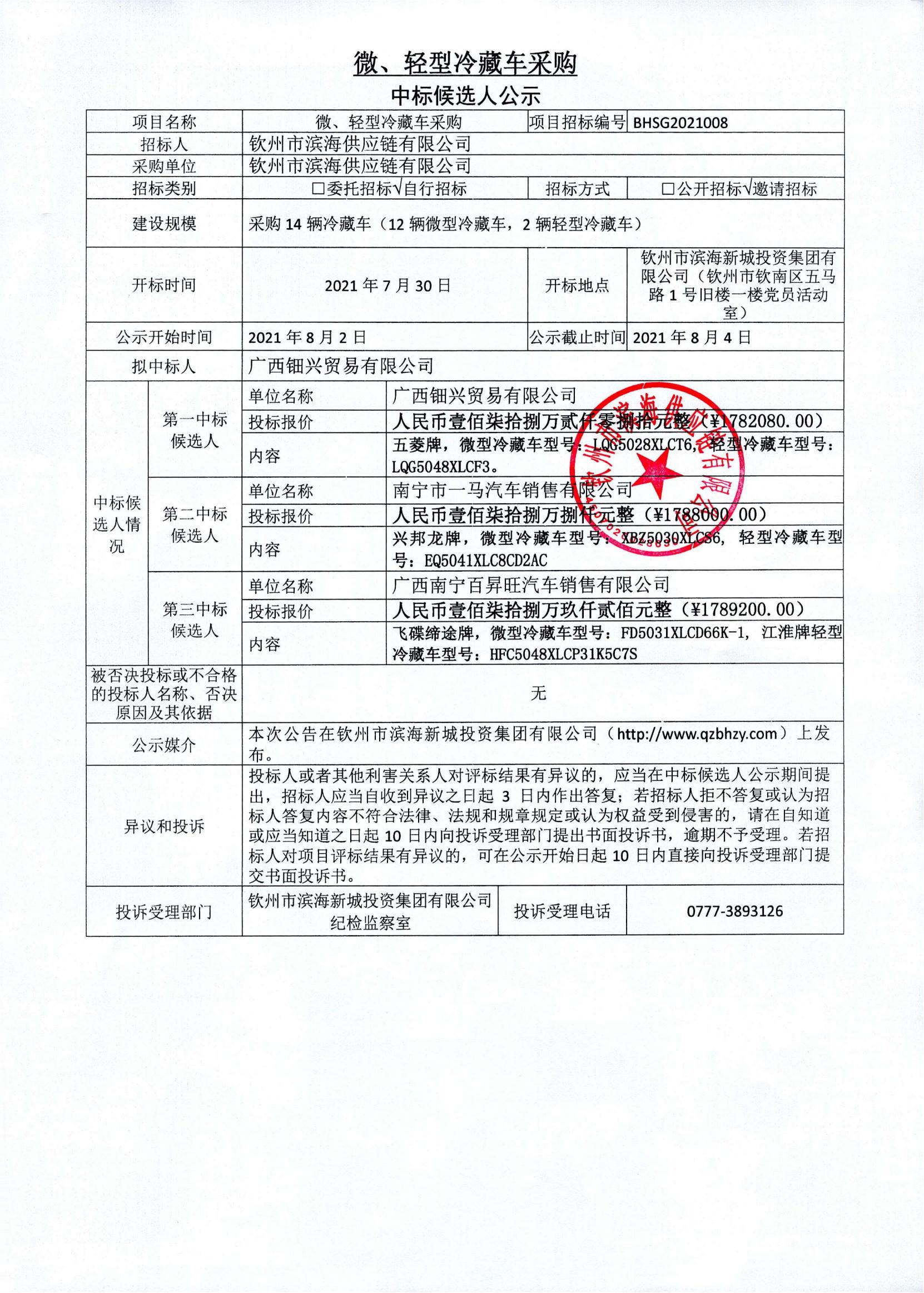 食材集采集配項目基地制冷設(shè)備采購項目中標候選人公示
