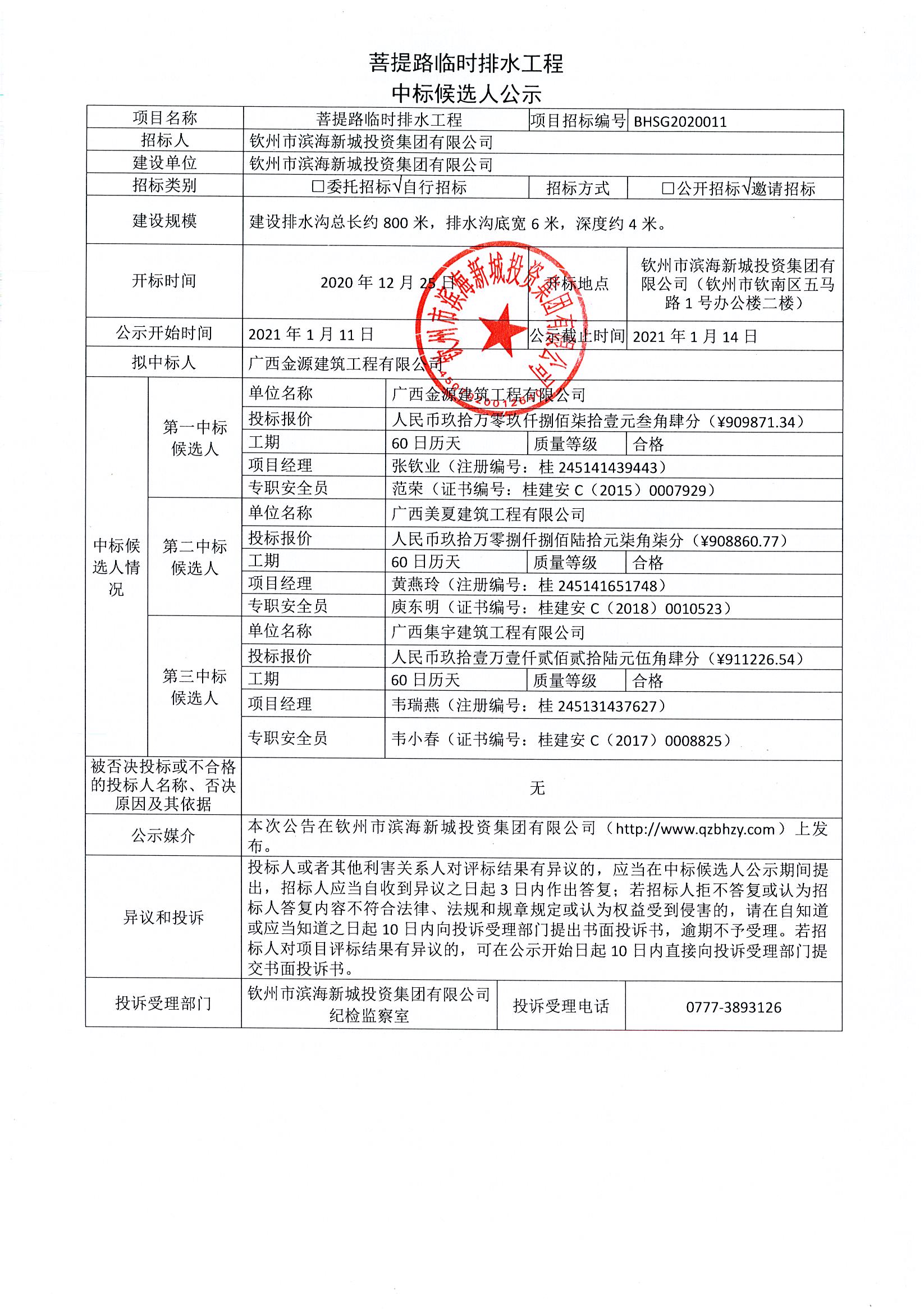 菩提路臨時排水工程中標候選人公示