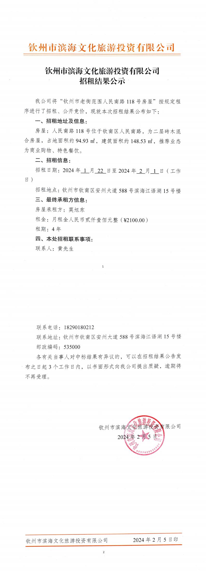關(guān)于欽州市老街范圍人民南路118號(hào)房屋公開招租的公示