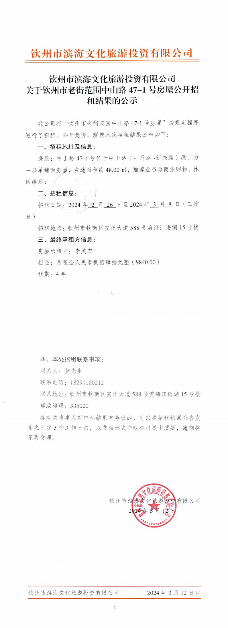 關(guān)于欽州市老街范圍中山路47-1號(hào)房屋公開招租的公示