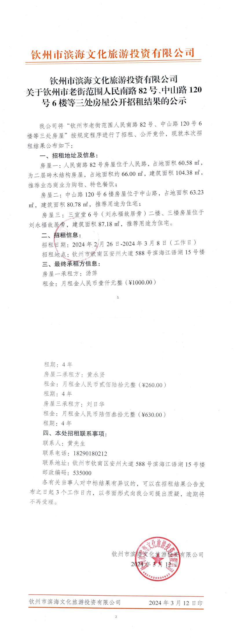 關(guān)于欽州市老街范圍人民南路82號(hào)、中山路120號(hào)6樓等三處房屋公開招租的公示