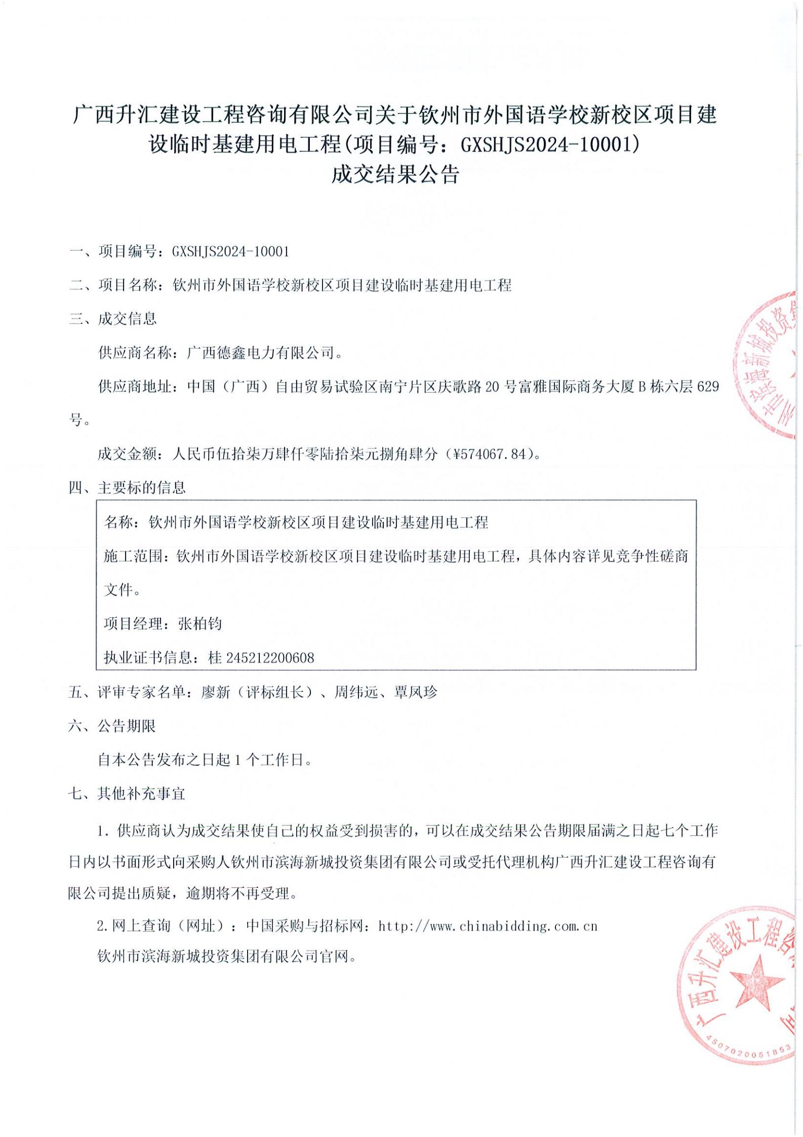 欽州市外國(guó)語學(xué)校新校區(qū)項(xiàng)目建設(shè)臨時(shí)基建用電工程成交結(jié)果公告