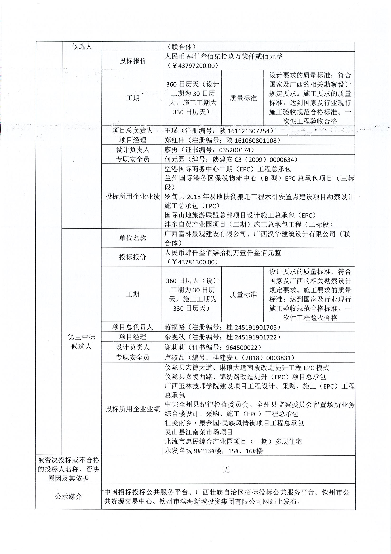 欽州市中山路、占鰲巷旅游開發(fā)項目(一期)道路、外立面、景觀及試點工程設計-采購-施工(EPC)工程總承包中標候選人公示