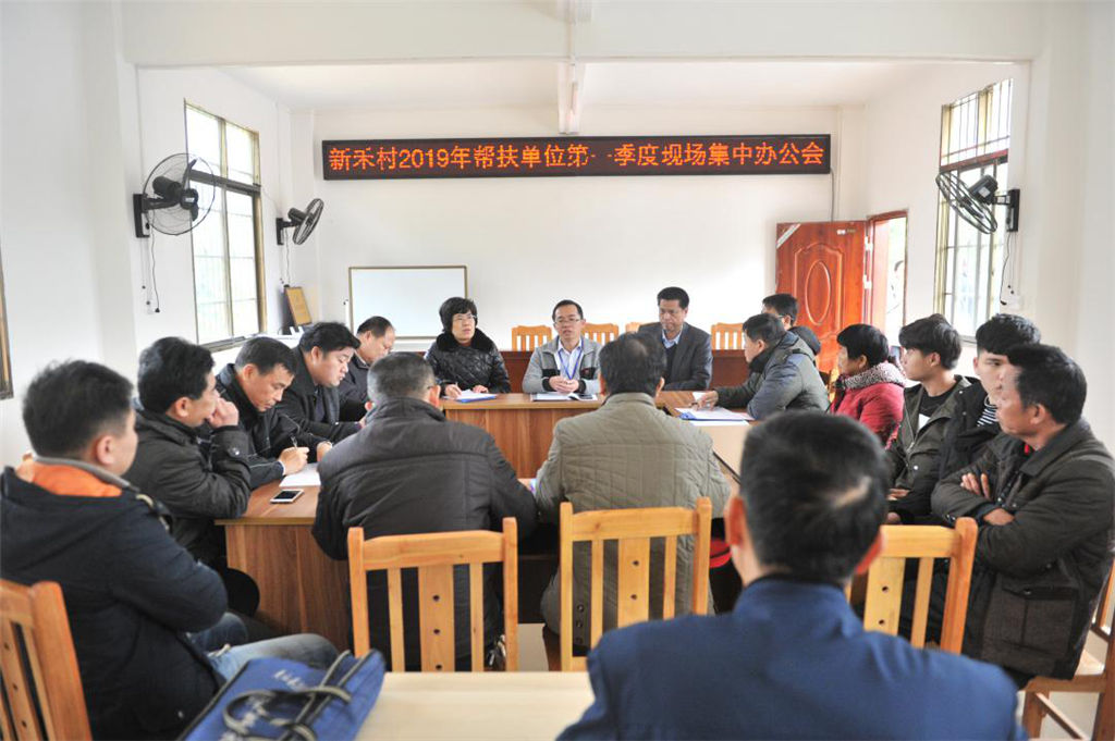 在開展慰問活動前,新禾村三個后盾幫扶單位在二樓會議室召開了201...