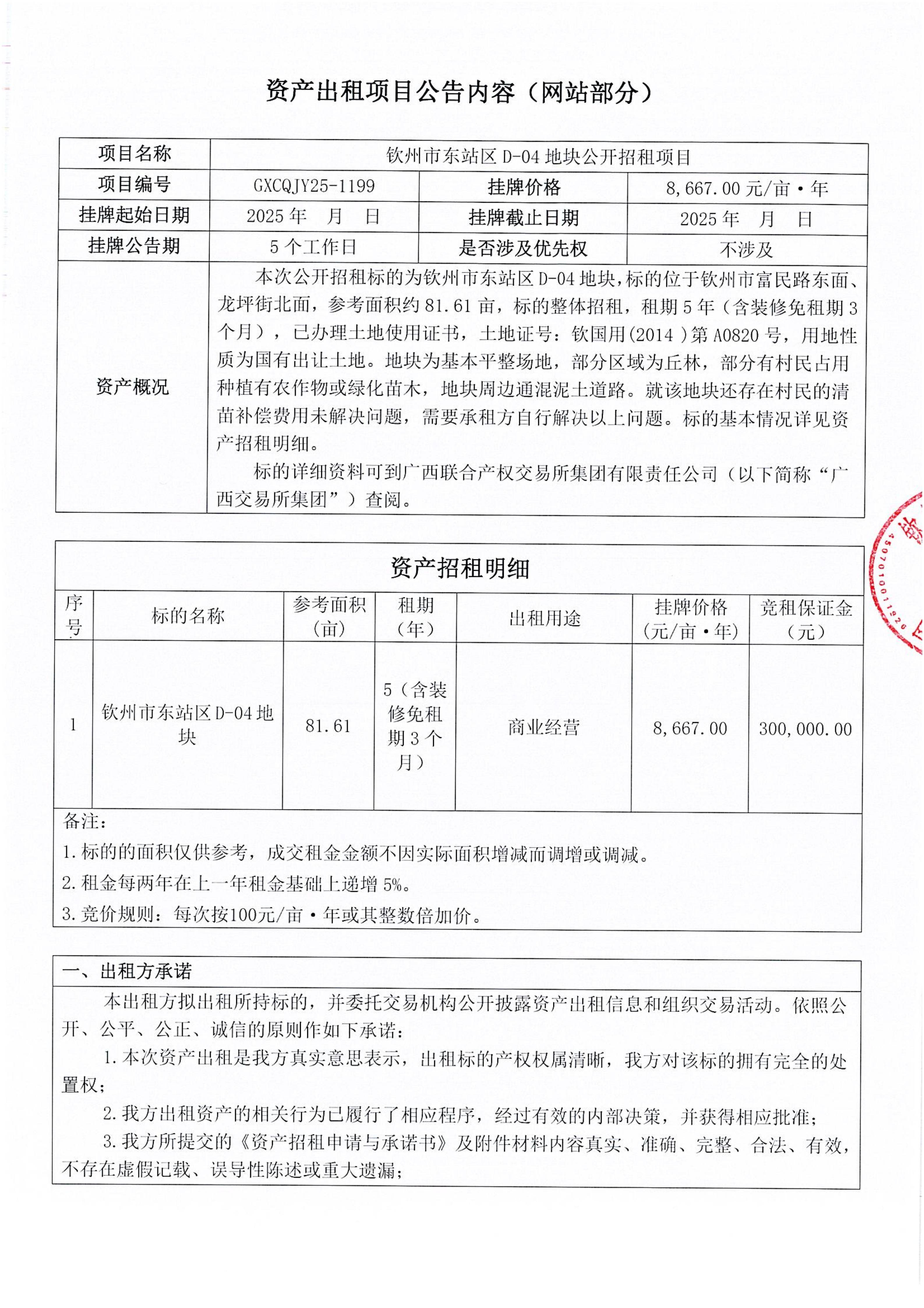 欽州市東站區(qū)D-04地塊公開招租項(xiàng)目