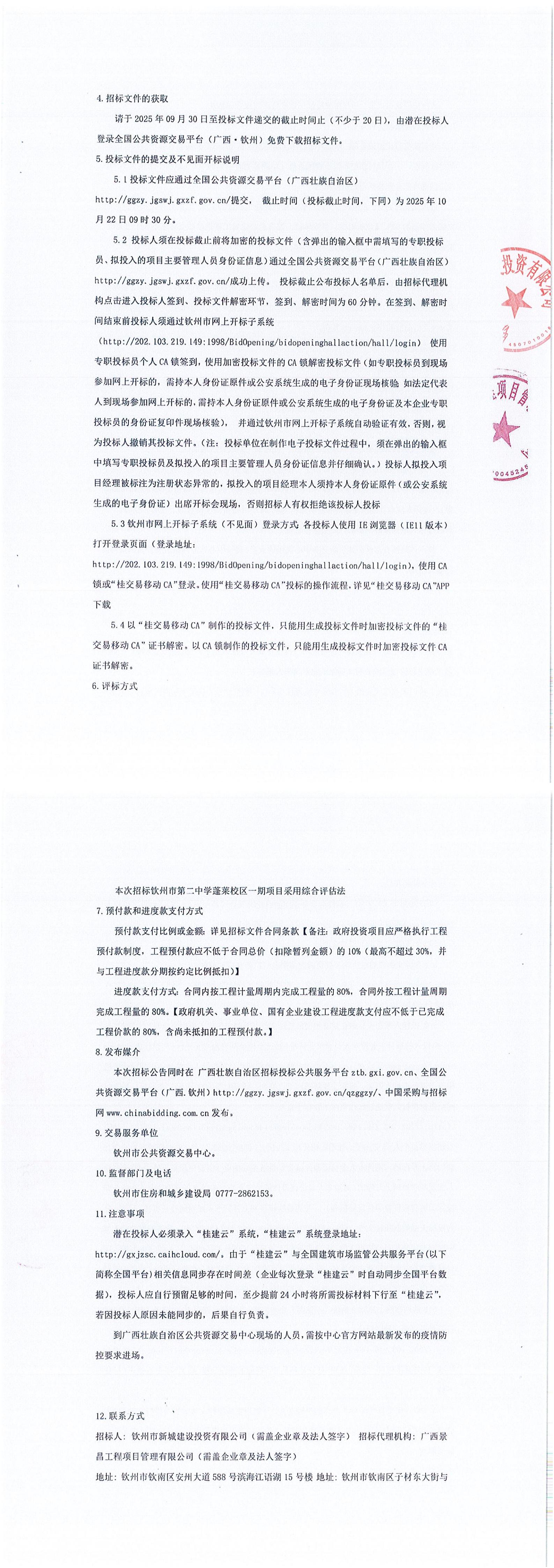 欽州市第二中學(xué)蓬萊校區(qū)一期項目(項目招標編號:E4507002846007265001)更正公告(一)