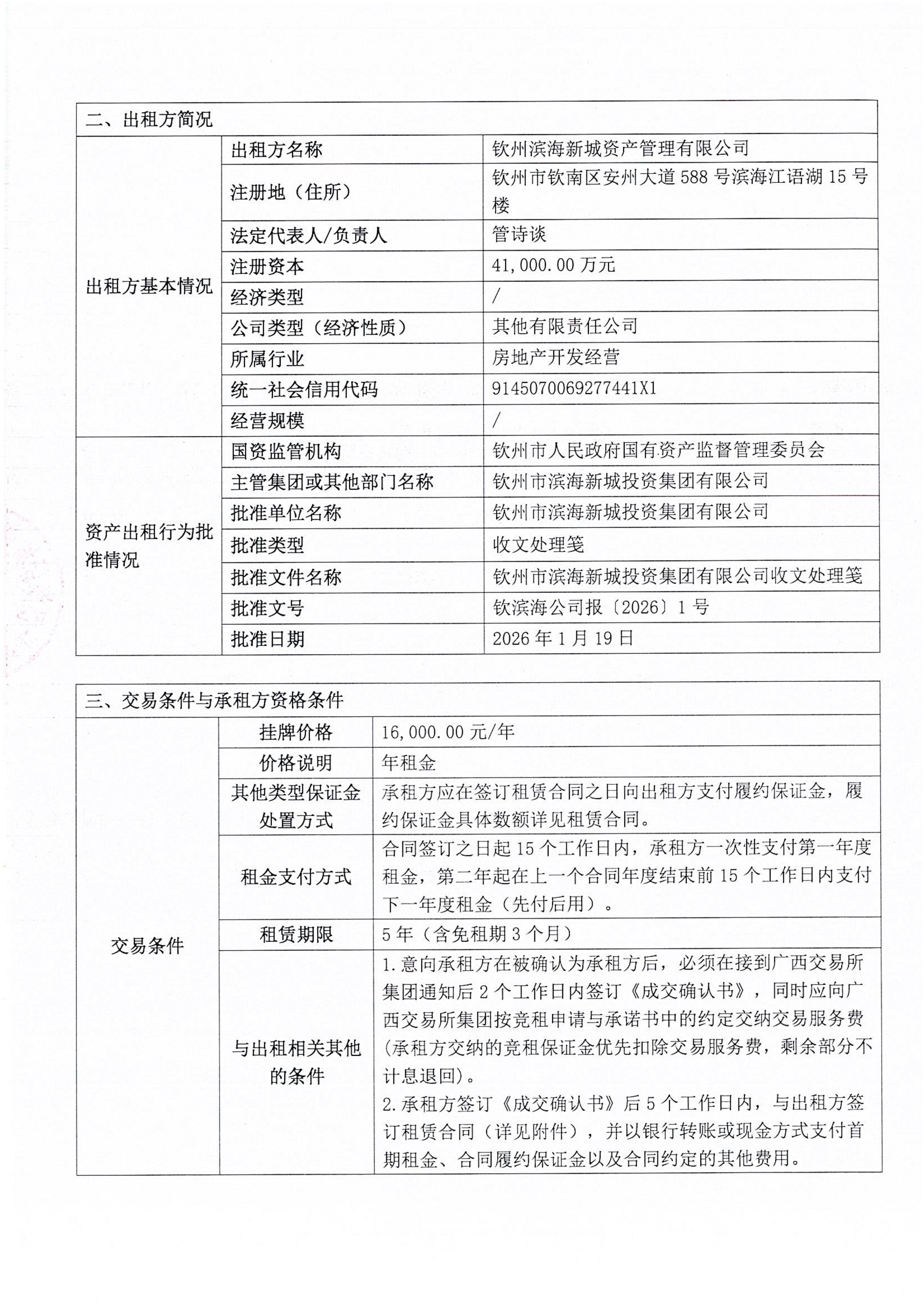 關(guān)于欽州市老街范圍公有場地招租公開招租的公告